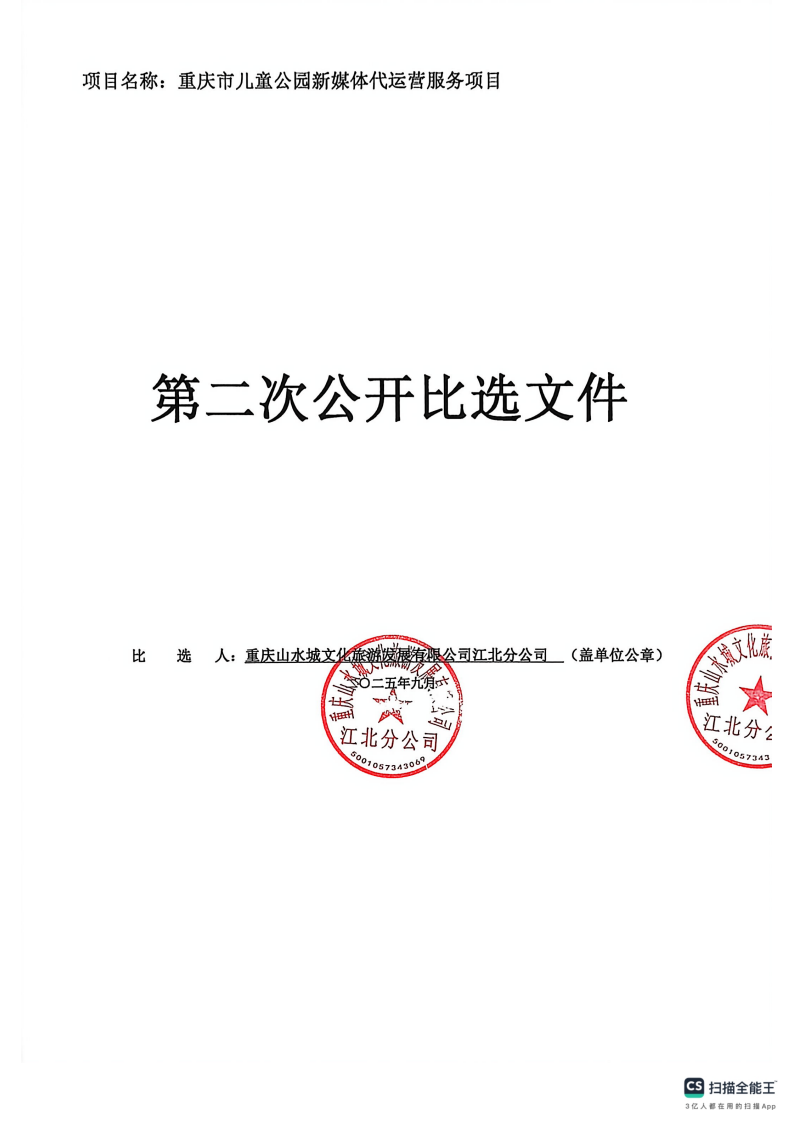 重庆市儿童公园新媒体代运营服务项目第二次公开比选公告文件